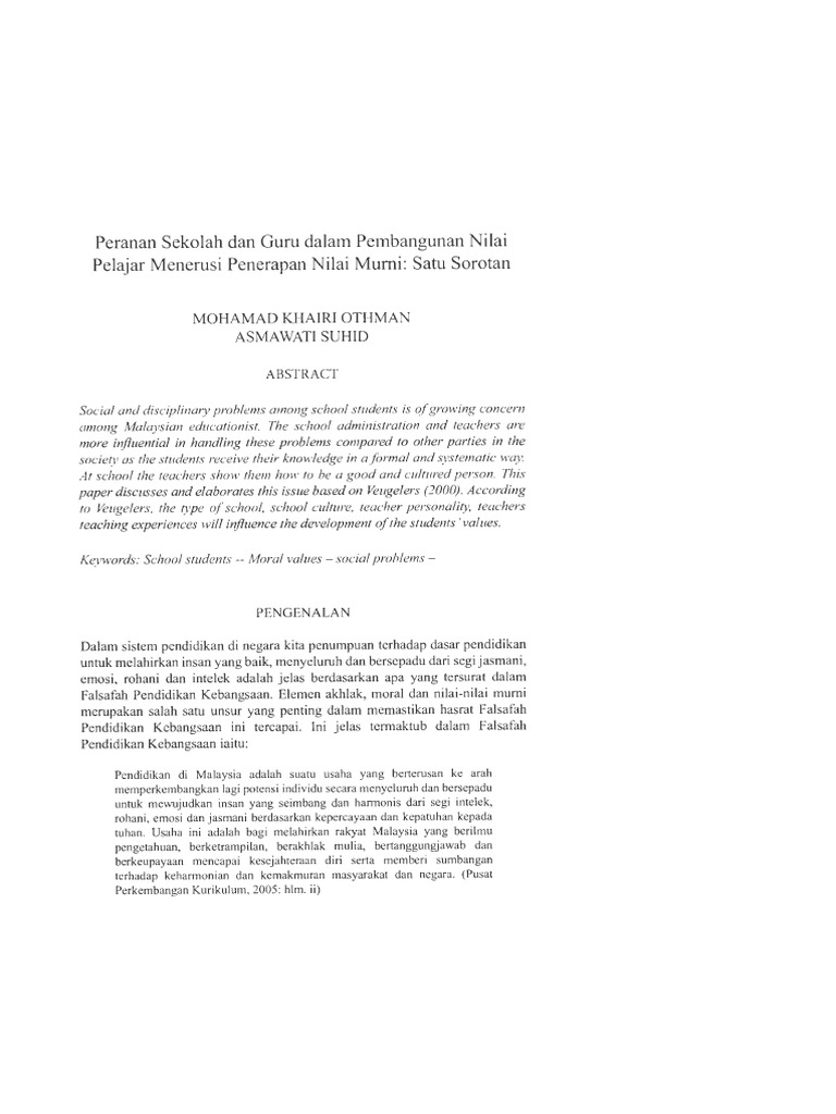Pdf Konsep Penerapan Dan Penghayatan Nilai Nilai Murni Berasaskan Falsafah Pendidikan Kebangsaan Fpk