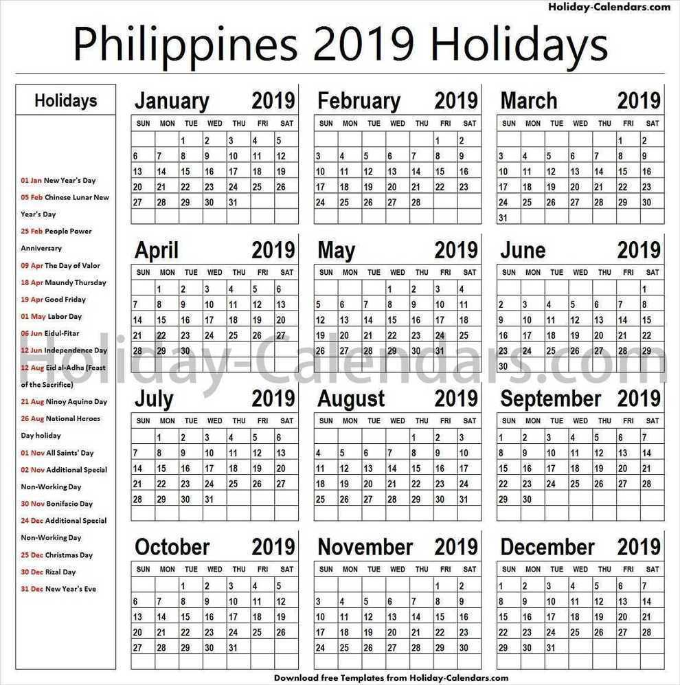 Philippine Calendar 2019 With Holidays Excel Anexa Wild