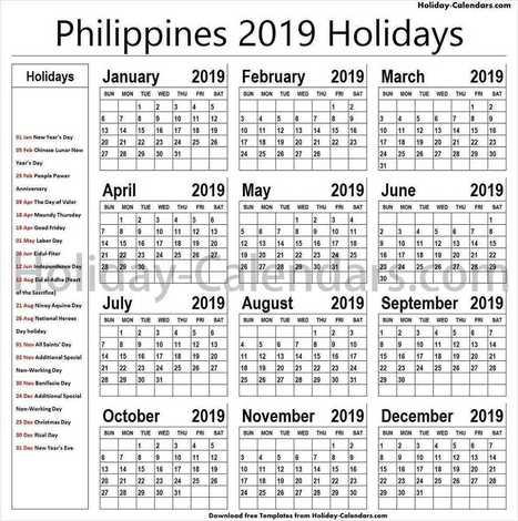 2019 Calendar Philippines Holidays 2019 Printable Calendar Templates