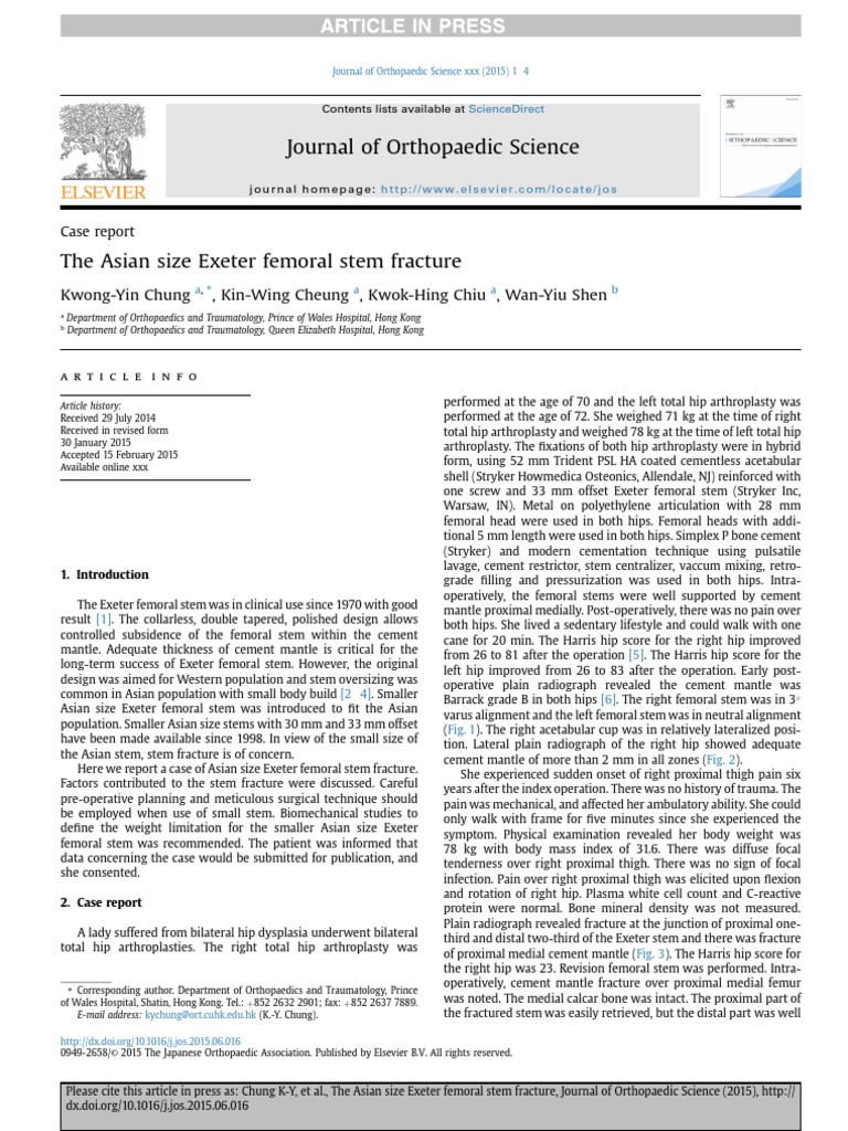 The Asian Size Exeter Femoral Stem Fracture Hip Medicine