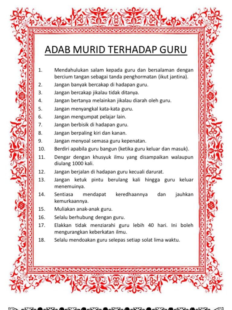 Adab Murid Terhadap Guru Kawan Dan Ibu Bapa