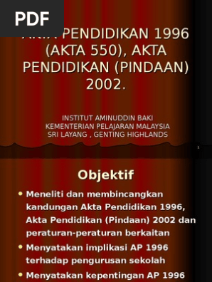 Pdfslide Net Abm Akta Pendidikan 1 Pdf Akta Pendidikan 1996 Akta 550 Akta Pendidikan Pindaan 2002 Institut Aminuddin Baki Kementerian Pelajaran Course Hero