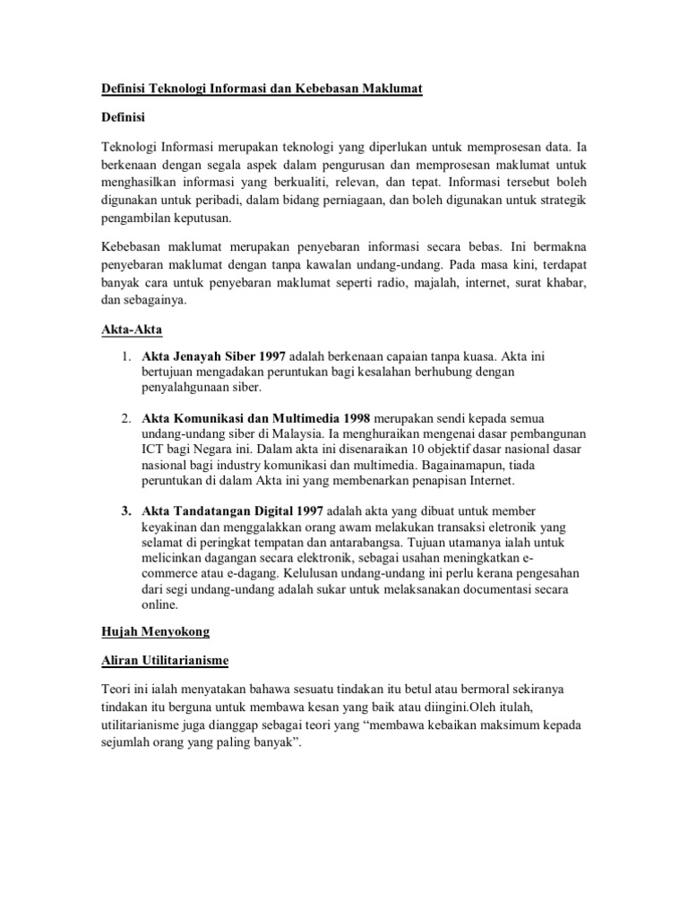 Definisi Teknologi Informasi Dan Kebebasan Maklumat