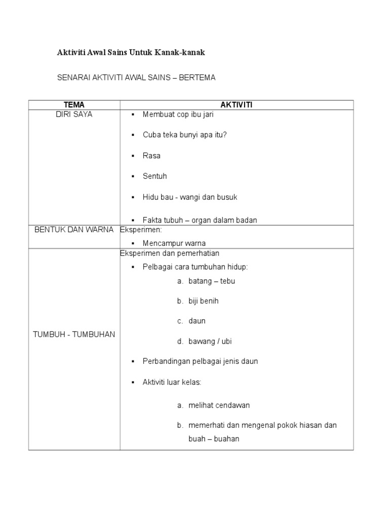 Aktiviti Awal Sains Untuk Kanak Kanak