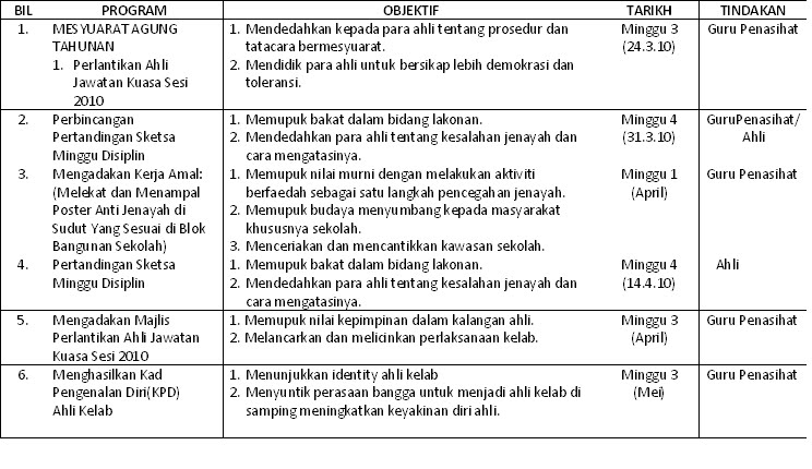 Perancangan Aktiviti Tahunan Kelab Pencegahan Jenayah Dan Anti Dadah