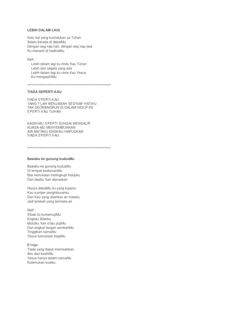 Hatiku tenang berada dekatmu kaulah jawaban hidupku hatiku tenang berada dekatmu kau yang p lihara hidupku reff. Ingatkanlah aku maukah kau mengingatkan aku. Aku ingin selalu berada di hadiratmu aku ingin selalu berlindung dalam naunganmu di bawah kepak sayapmu kau bawaku terbang tinggi melintasi langit biru bagaikan rajawali.