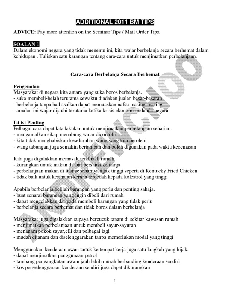 Contoh Karangan Spm Amalan Berjimat Cermat