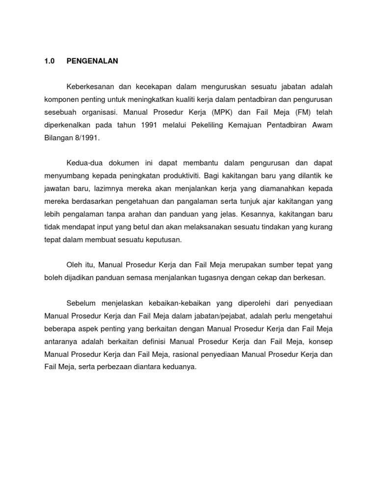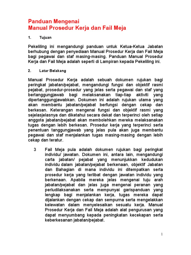 Panduan Mengenai Manual Prosedur Kerja Dan Fail Meja 1 Tujuan