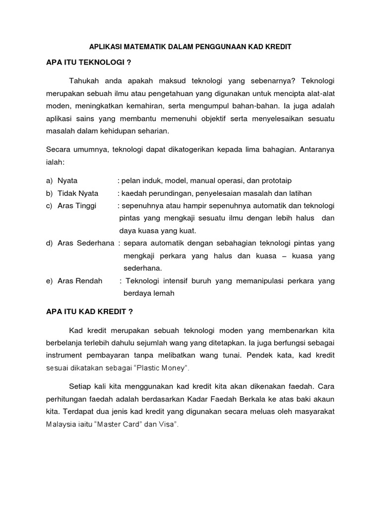 Aplikasi Matematik Dalam Penggunaan Kad Kredit