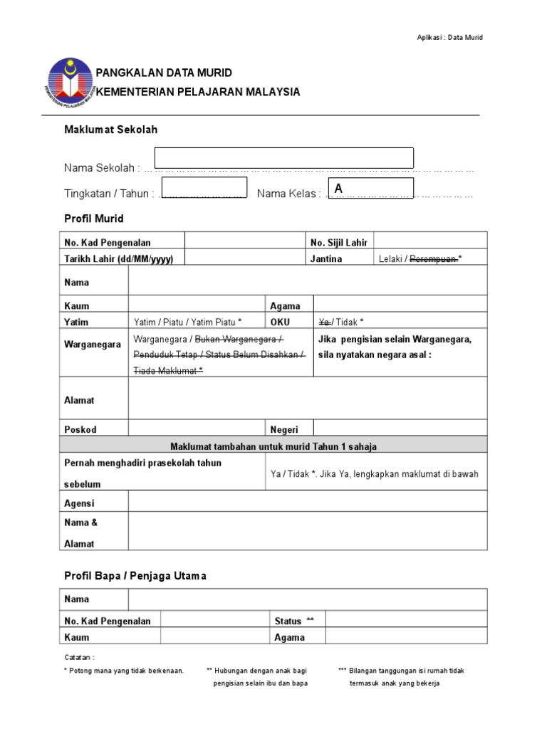Apdm Kehadiran Murid Login Borang Maklumat Pelajar Sekolah