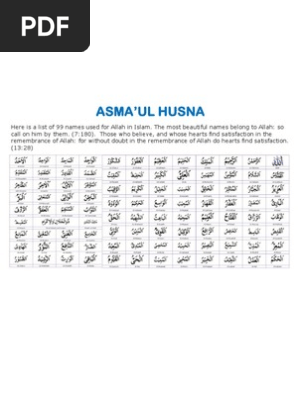 99 Names Of Allah Asma Ul Husna Pdf Document
