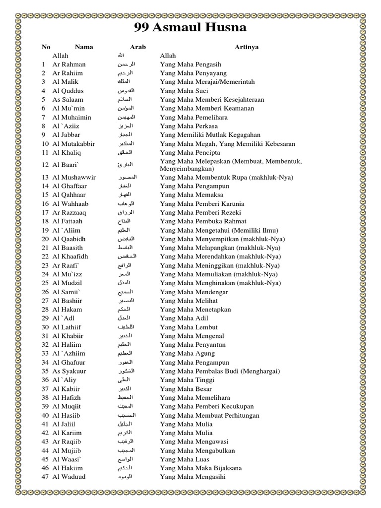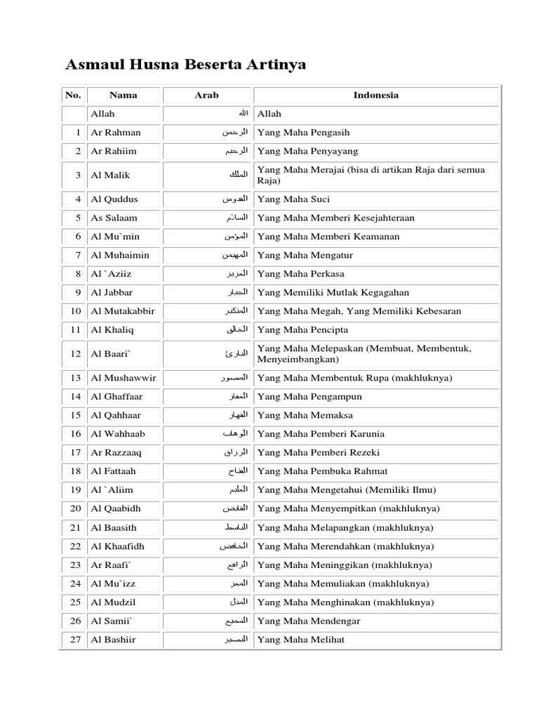 Tabel Asmaul Husna Dan Artinya Pdf Download Sarah Smith