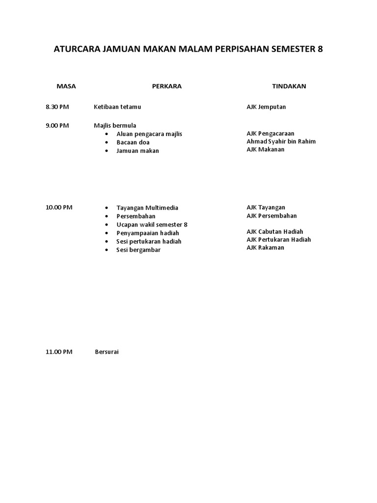 Aturcara Jamuan Makan Malam Perpisahan Semester 8 Docx