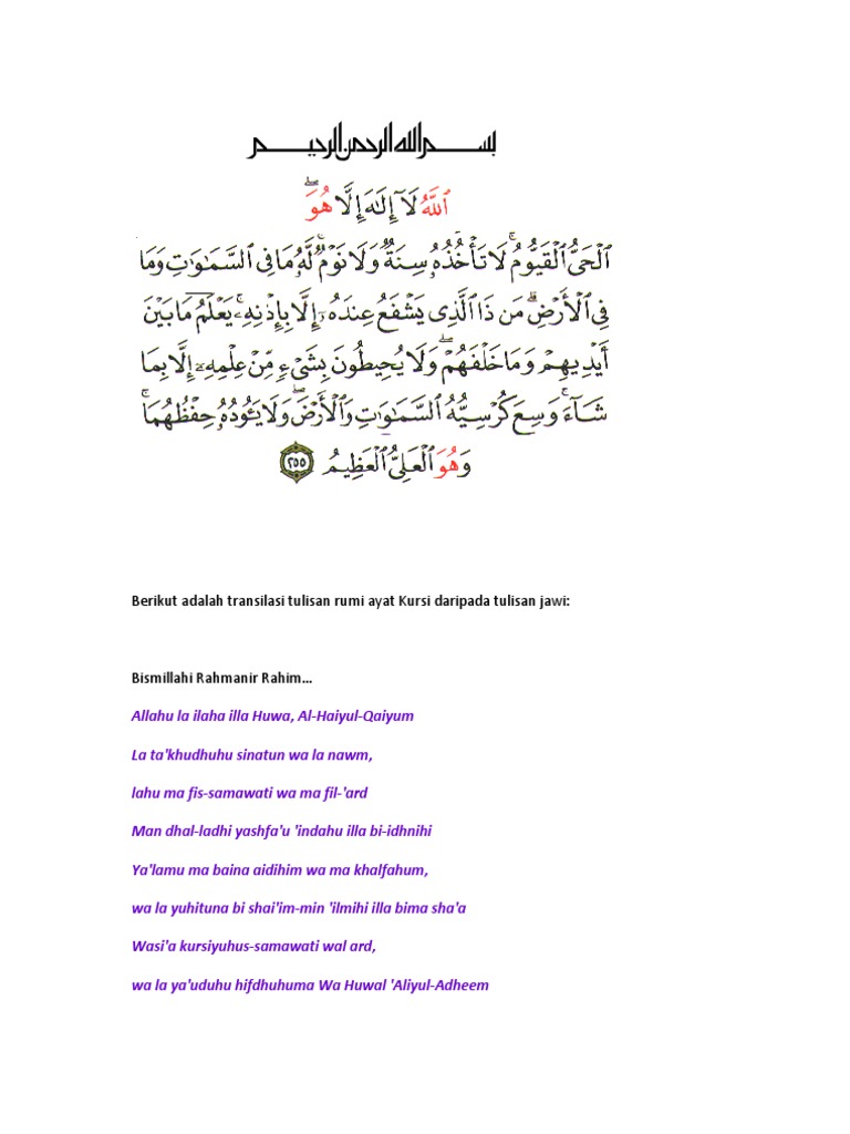 Bacaan Ayat Kursi Rumi Jawi Dan Terjemahan Wirid Dan Doa