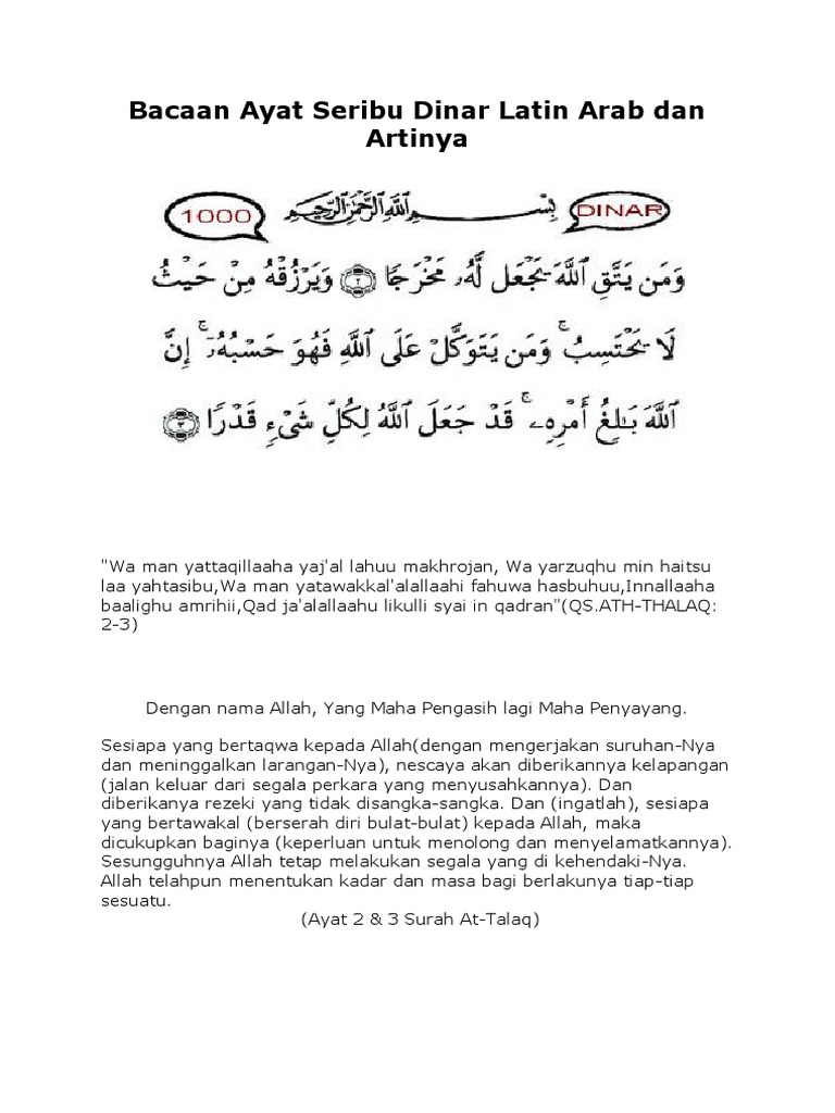Bacaan Ayat Seribu Dinar Dalam Tulisan Latin Dan Artinya Dimudahkan Rezeki Dirgantara Online