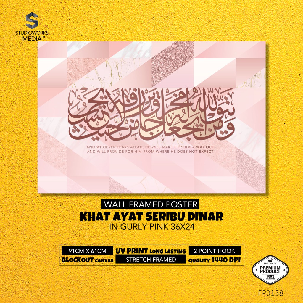Ready Stock Wall Framed Poster Khat Ayat 1000 Dinar In Gurly Pink 36x24 Shopee Singapore