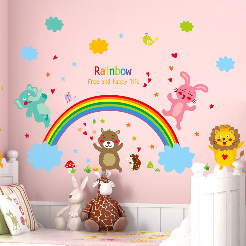 Stiker Wallpaper Desain Kartun Pelangi Dapat Dicopot Untuk Taman Kanak Kanak Shopee Indonesia