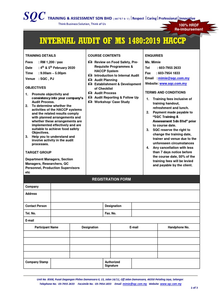 Internal Audit Of Ms1480 2019 Haccp Hazard Analysis And Critical Control Points Internal Audit