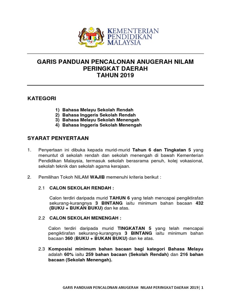 Garis Panduan Pemilihan Tokoh Nilam Daerah 2019