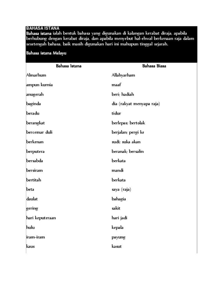I Tukarkan Bahasa Istana Yang Diberi Kepada Bahasa Biasa Bahasa Istana Bahasa Biasa