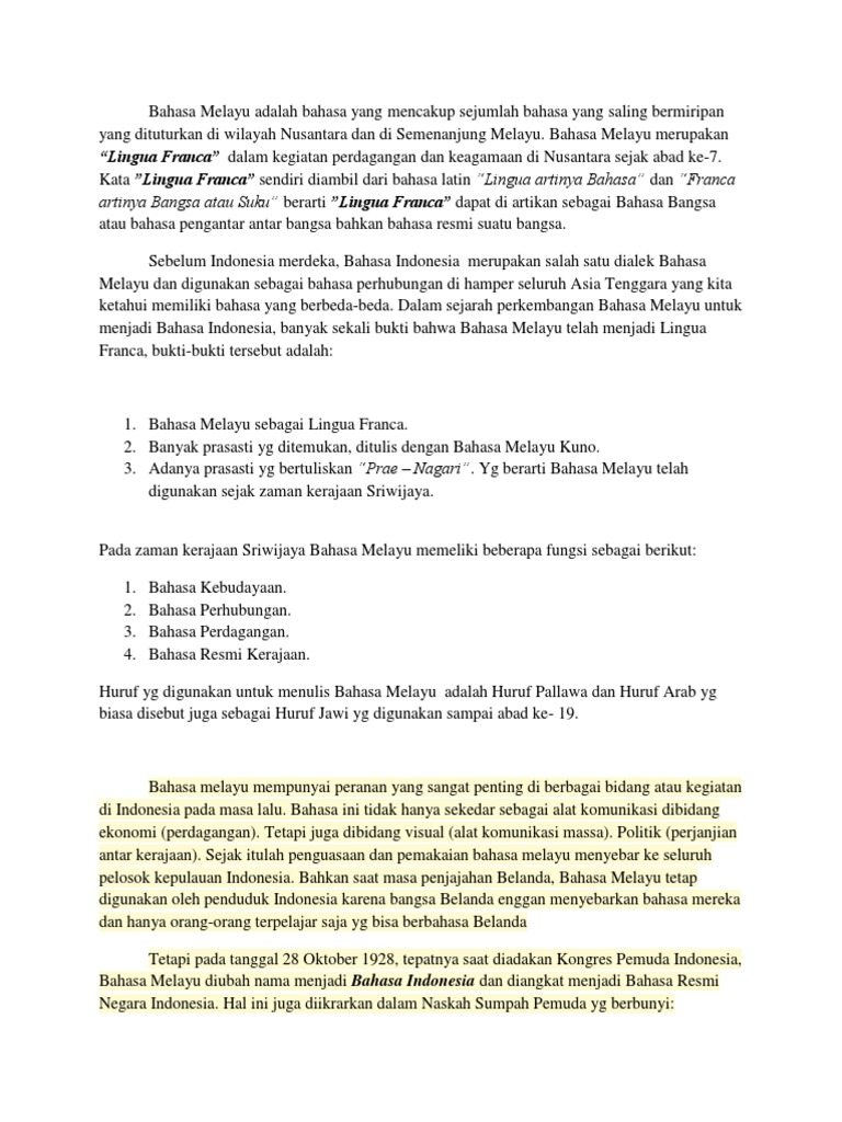 Sejarah Perkembangan Bahasa Melayu Sebagai Bahasa Indonesia