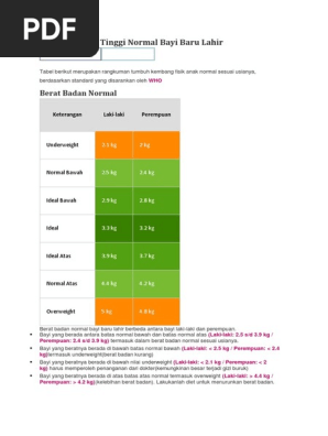 Berat Badan Tinggi Bayi Baru Lahir Laki Laki Perempuan