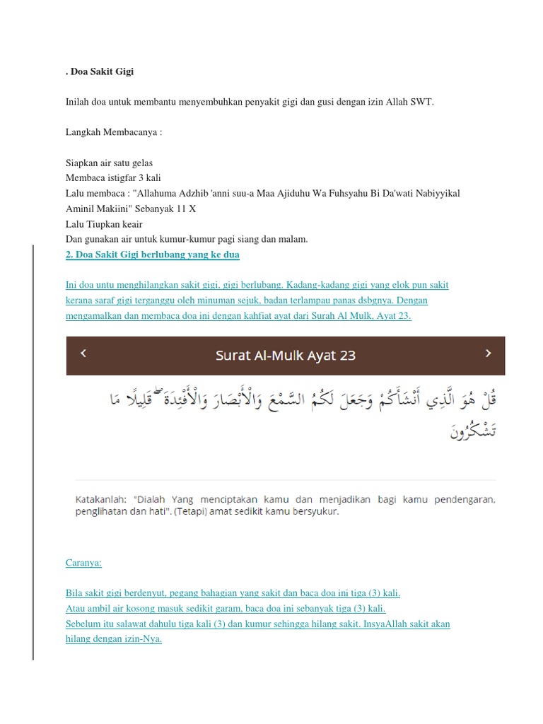 Doa Sakit Gigi Bengkak Berlubang Dan Karang