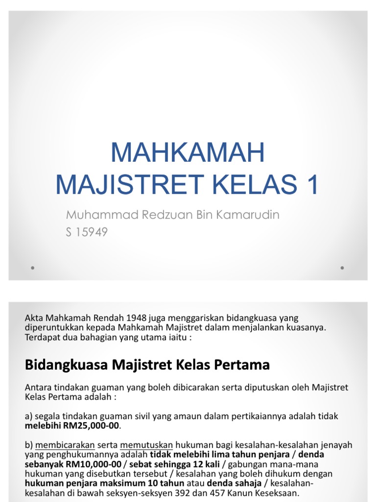 Bidang Kuasa Majistret Kelas Dua Adalah Lebih Rendah Lagi Apabila Beliau Course Hero