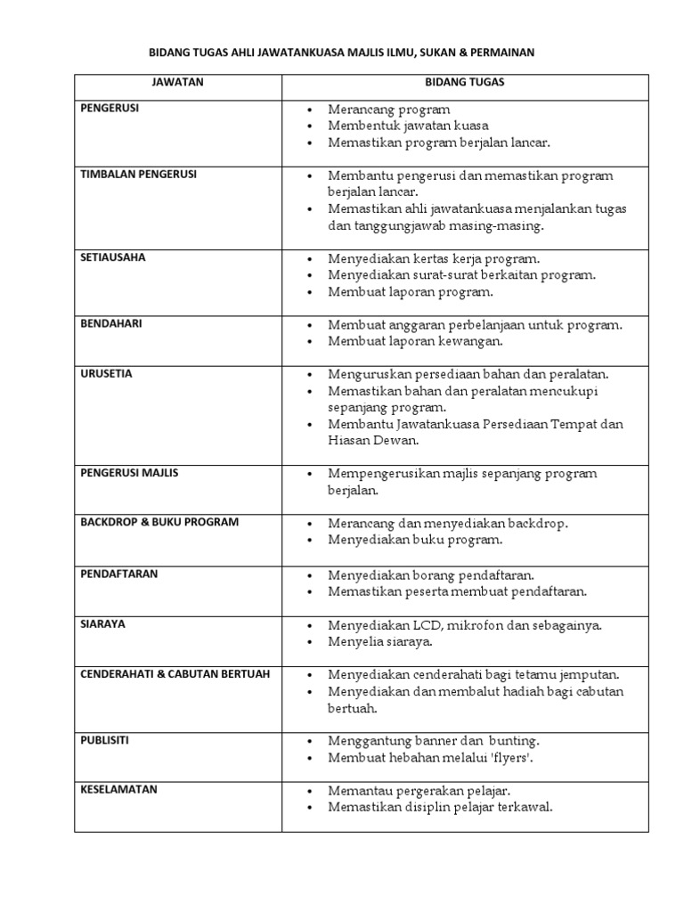 Bidang Tugas Setiap Ahli Jawatankuasa