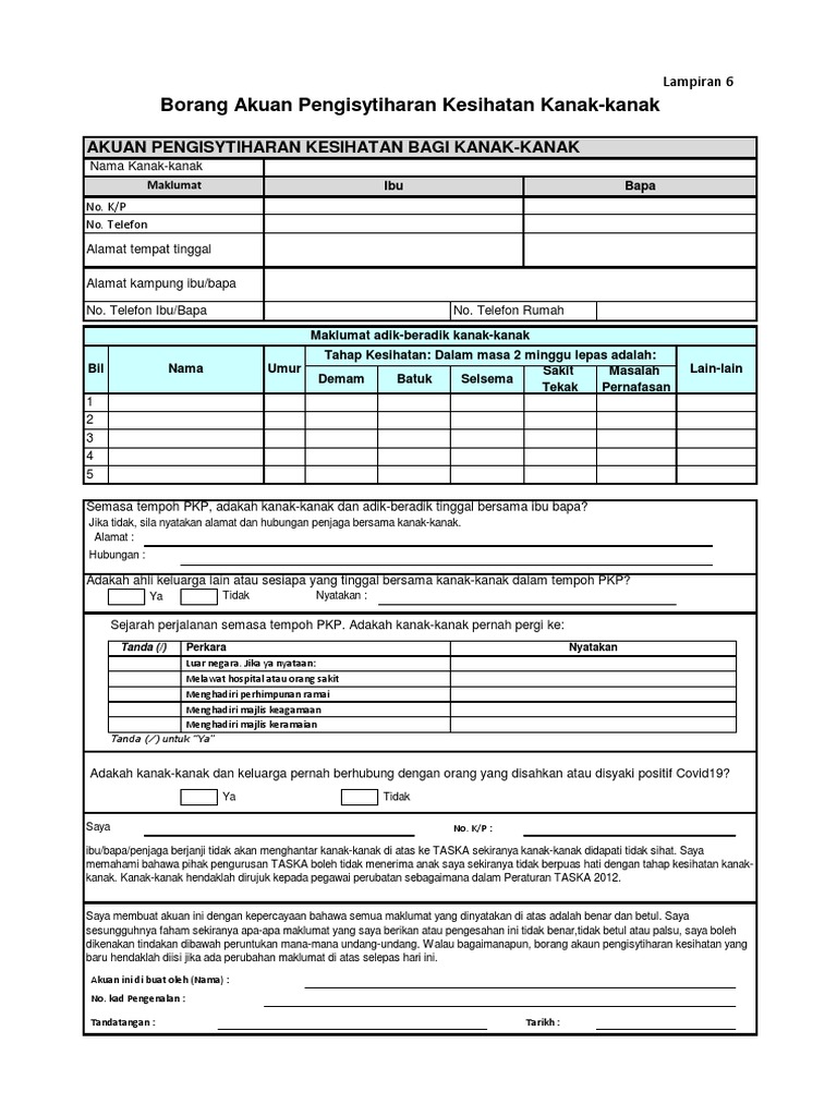 Taska Khalifah Cerdas Assalamualaikum Wbt Kepada Ibubapa Tkc Yang Mempunyai Masalah Untuk Print Borang Akuan Pengisytiharan Kesihatan Kanak Kanak Sila Ambil Di Tkc Pada Hari Sabtu 30 5 2020 Jam 10 Pagi 12tengahhari Terima Kasih Facebook