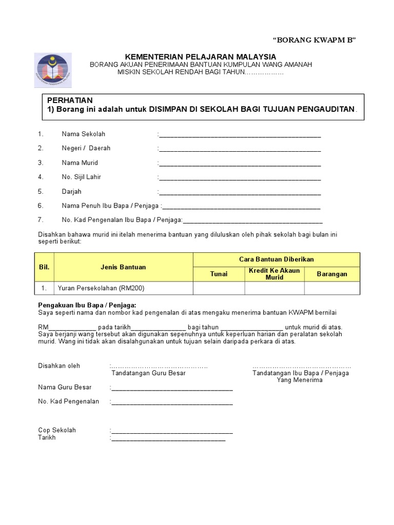 Borang Kwapm B Kementerian Pelajaran Malaysia