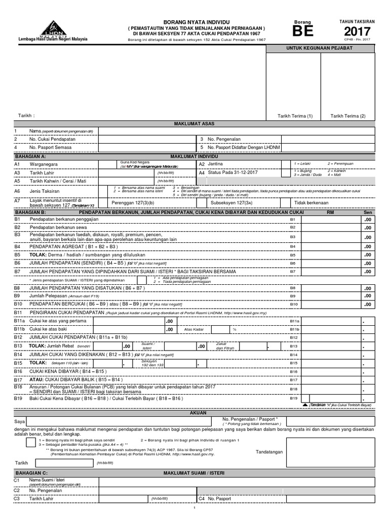 Borang Be 2017 Pdf