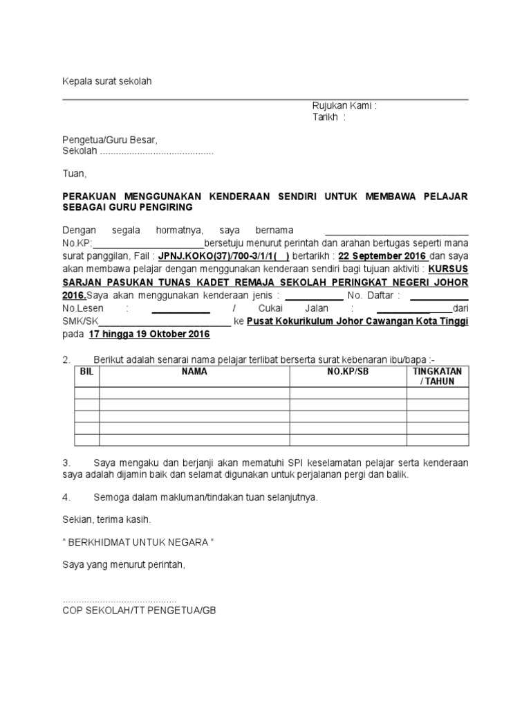 2017 01 13 Contoh Surat Kebenaran Menggunakan Kenderaan Guru Untuk Membawa Pelajar