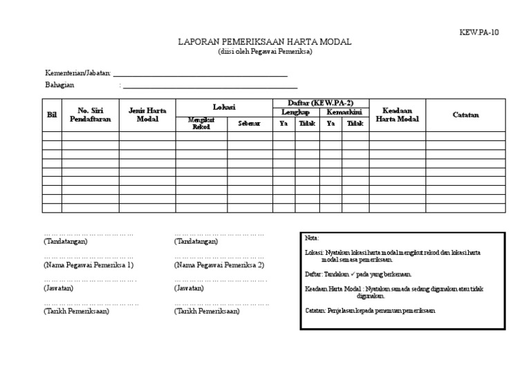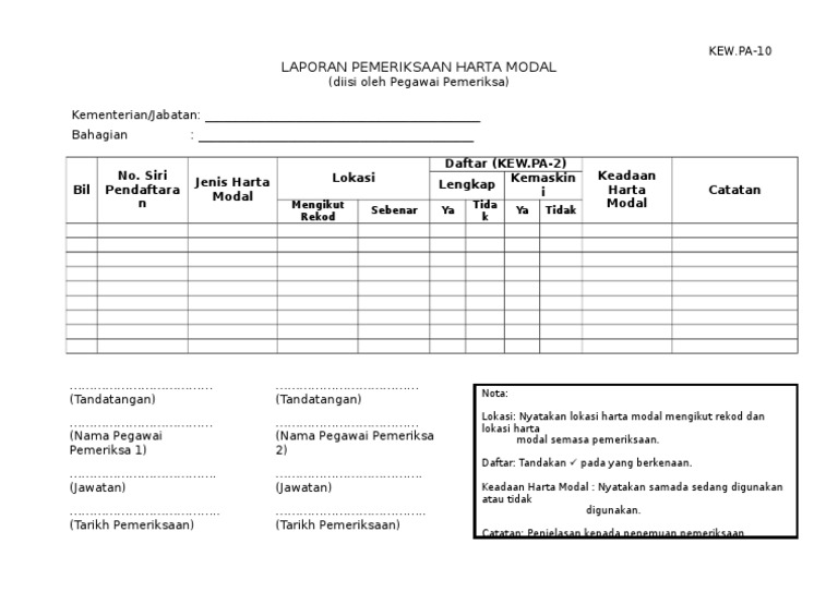 Kew Pa 10 Laporan Pemeriksaan Harta Modal Doc
