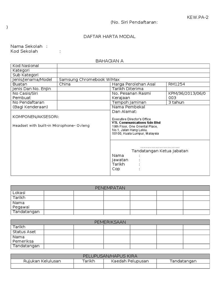 Kew Pa 1 Borang Laporan Penerimaan Aset Alih Kerajaan