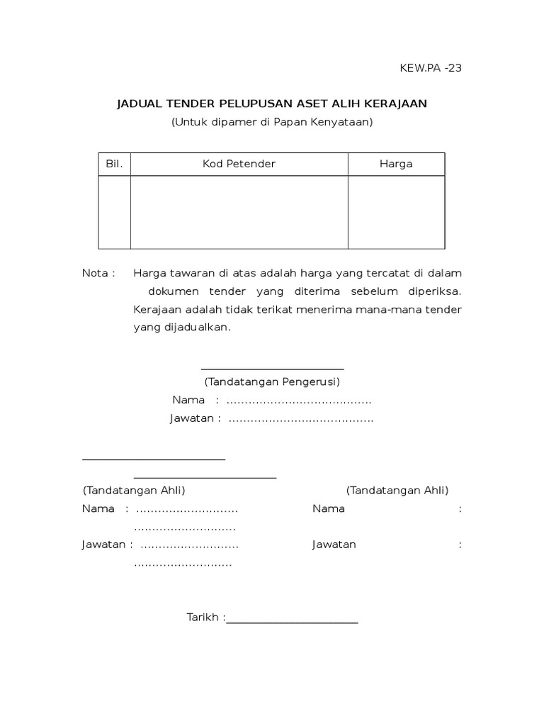 23 Kew Pa 23 Jadual Tender Pelupusan Aset Alih Doc