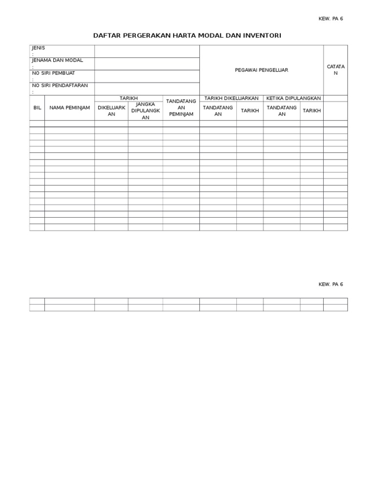 Borang Aset Kew Pa 1 20 1pp Xls Pdf Document