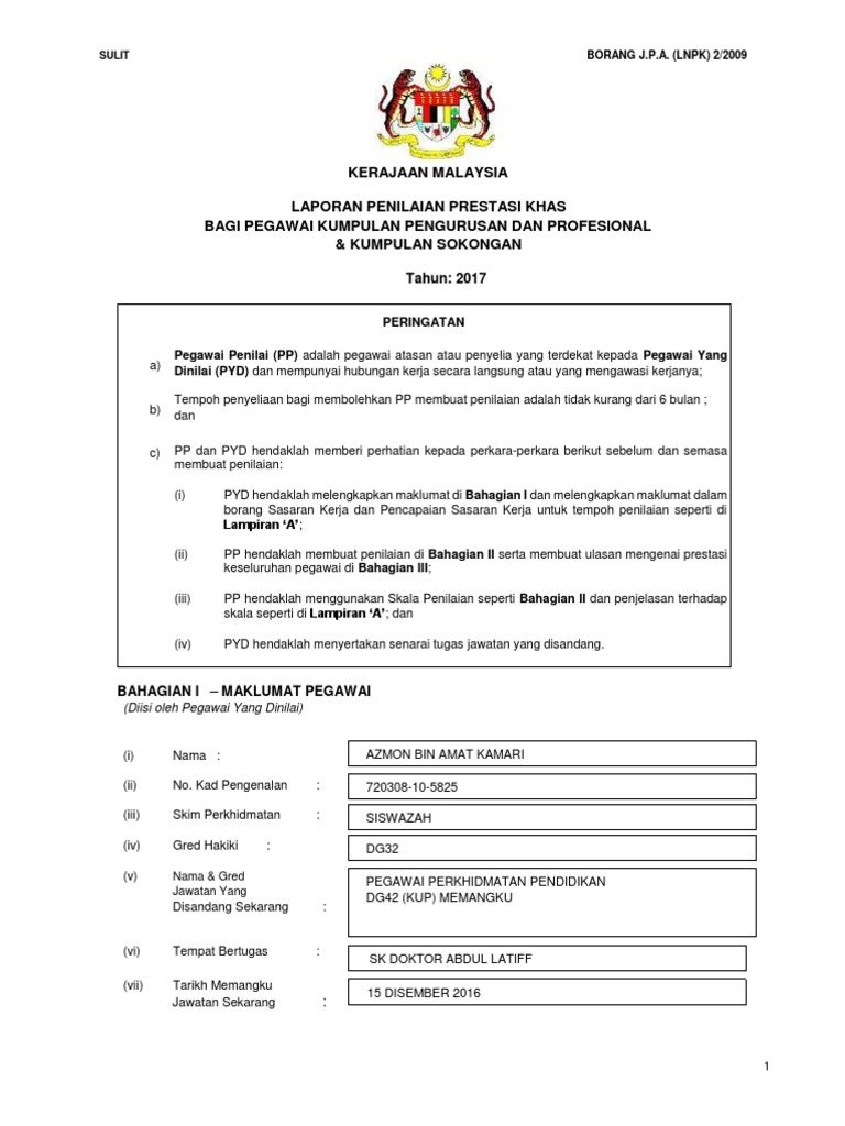 Borang Laporan Penilaian Prestasi Khas Nedlasting Krom Ltapalon S Diary