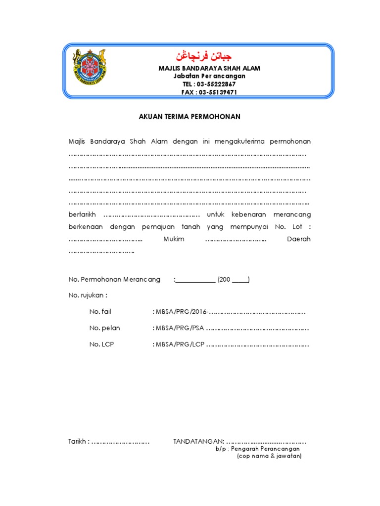 Akuan Terima Permohonan Mbsa