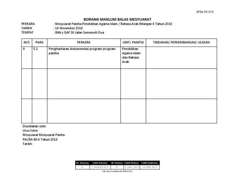 Pk07 3 Borang Maklum Balas Minit Mesyuarat Bil1 2020 Edited Pages 1 5 Text Version Anyflip