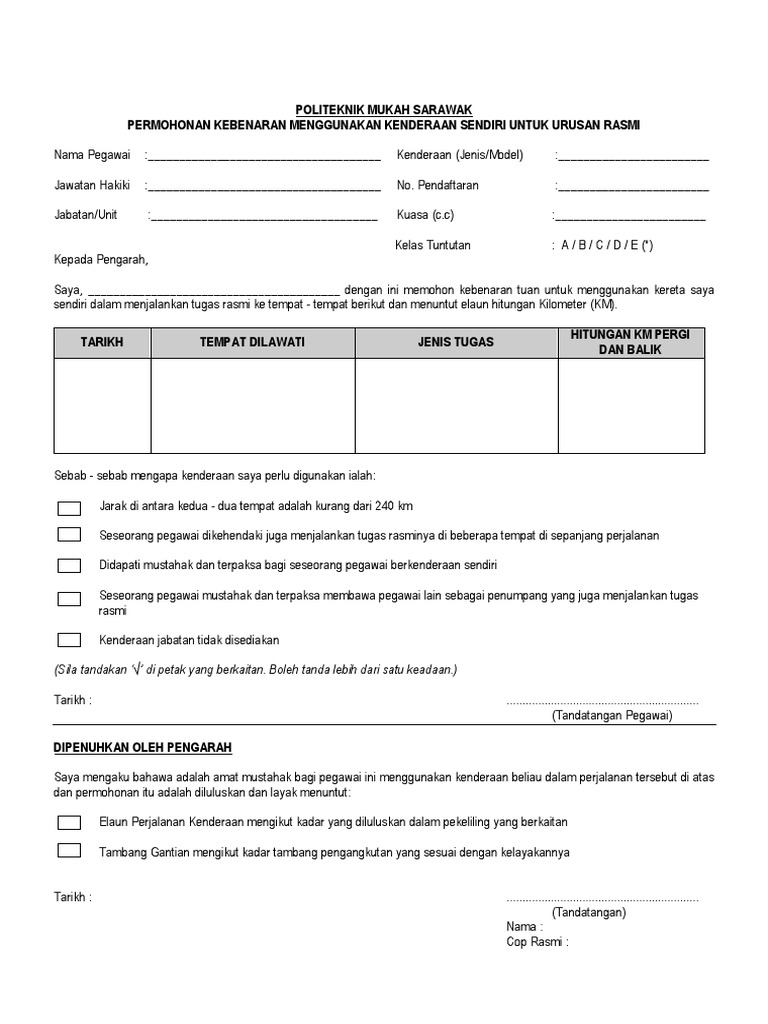 Borang Kelulusan Menggunakan Kenderaan Sendiri Pdf