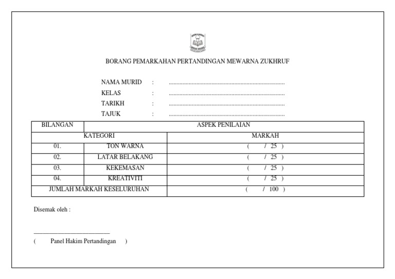 Borang Pemarkahan Pertandingan Mewarna Zukhruf Decor Home Decor Blinds