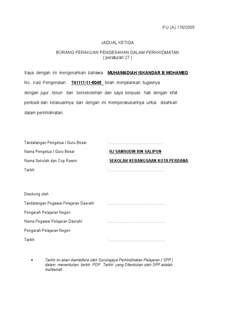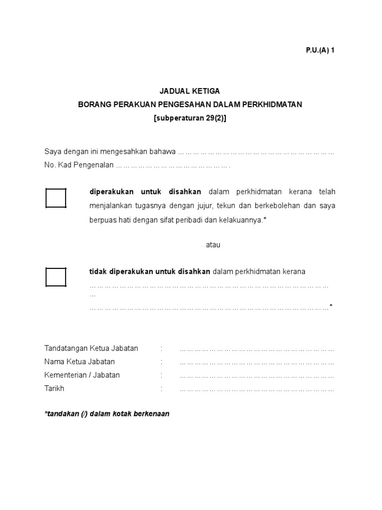 Borang Pengesahan Dalam Jawatan