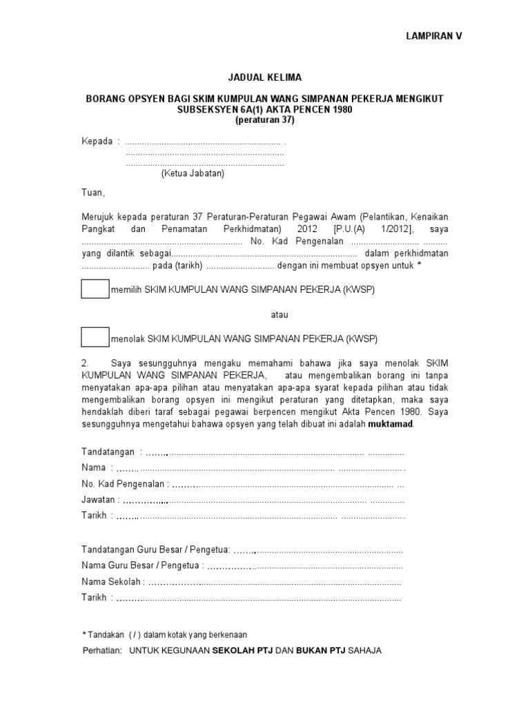 Jadual Kelima Borang Opsyen Skim Kwsp