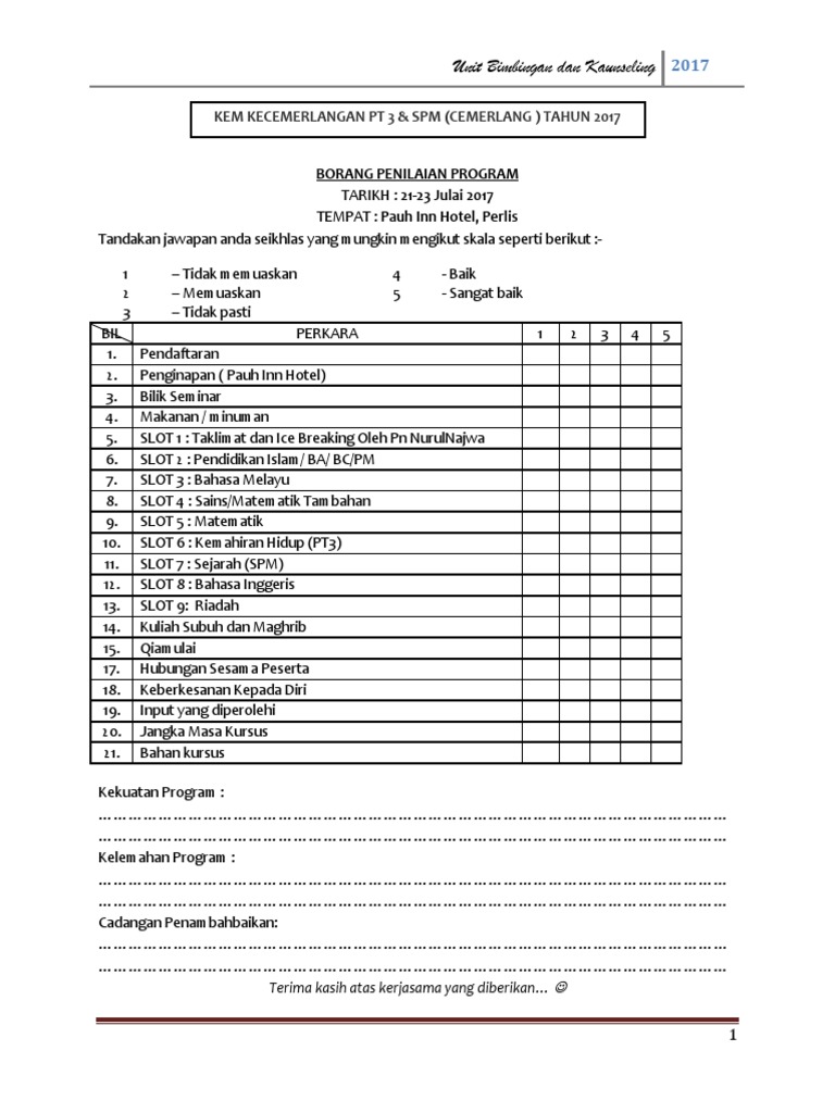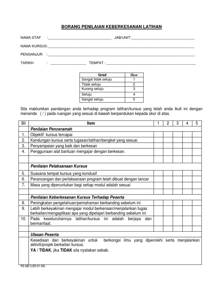 Doc Contoh Borang Penilaian Keberkesanan Latihan Dky Jerry Academia Edu
