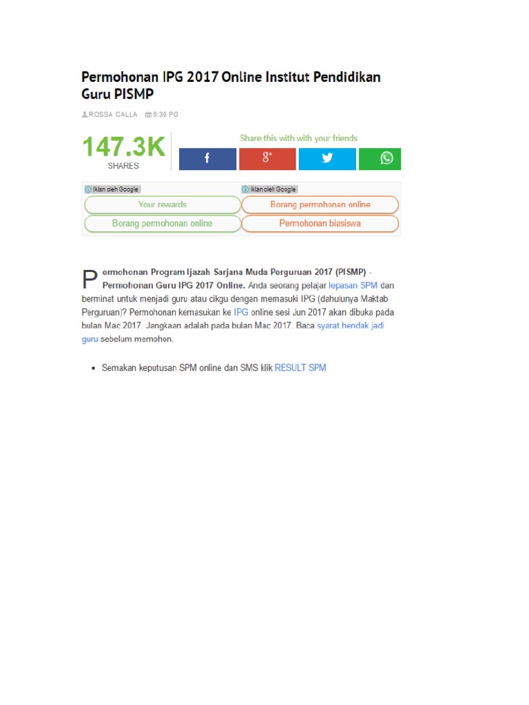 Iraimalar Permohonan Program Ijazah Sarjana Muda Perguruan Pismp Ambilan 2017 Https Pismp Moe Gov My Program Ijazah Sarjana Muda Perguruan Dengan Kepujian Pismp Ambilan 2017 Https Pismp Moe Gov My Iklan Pismp Cfm Program Ijazah Sarjana Muda