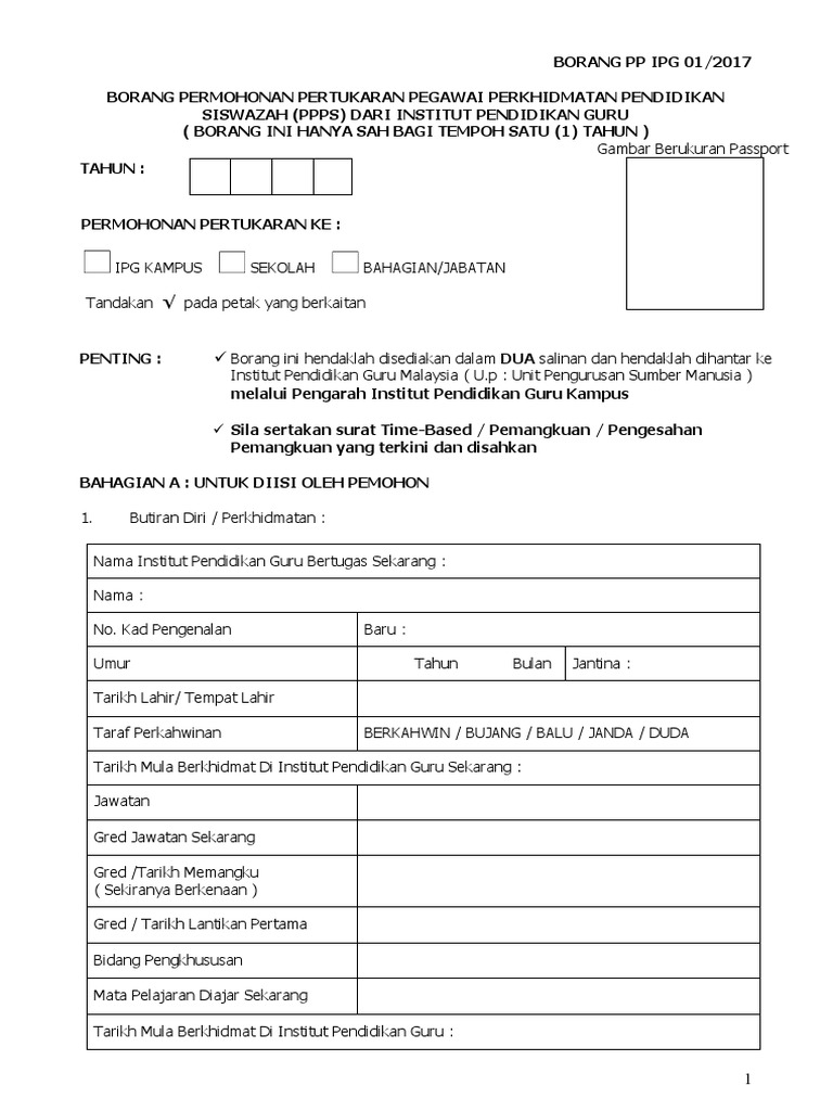 Borang Permohonan Ipg 2017