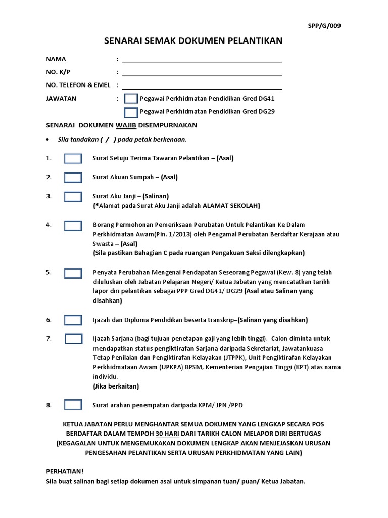 2 Senarai Semak Dokumen Pelantikan Pegawai Perkhidmatan Pendidikan Pdf