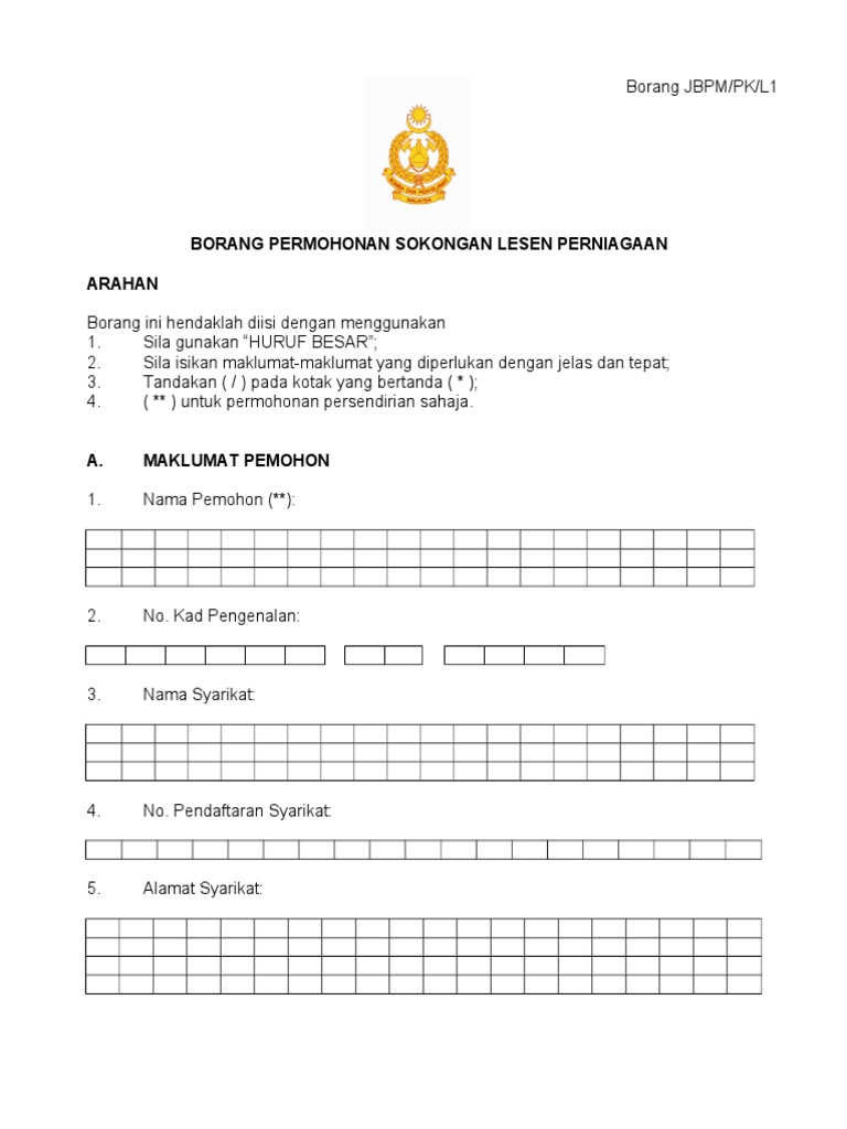 Borang Permohonan Sokongan Lesen Perniagaan Awam Borang Permohonan Sokongan Lesen Perniagaan