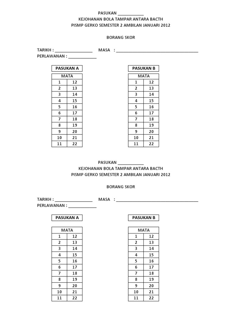 Borang skor bola tampar. Borang skor bola tampar kanival sukan 2011 free download as excel spreadsheet xls pdf file pdf text file txt or read online for free. Pertandingan ini dianjur dan dikelolakan oleh maksak. Morgan 1870 1942 sebagai suatu permainan rekreasi.